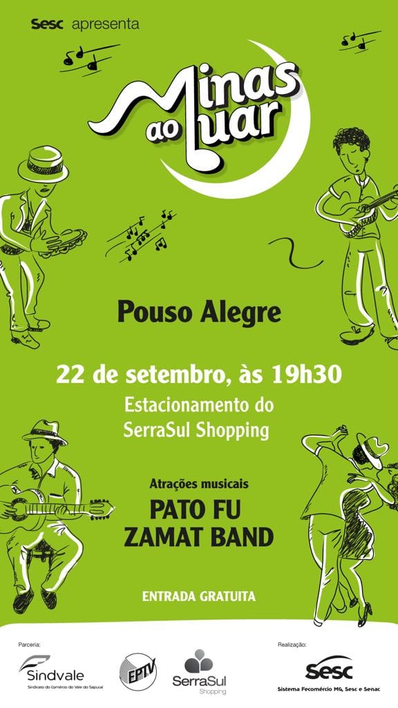 O Sesc traz Minas ao Luar para Pouso Alegre com show gratuito da banda Pato Fu, com os sucessos conhecidos em todo o Brasil e o novo trabalho Música de Brinquedo 2.