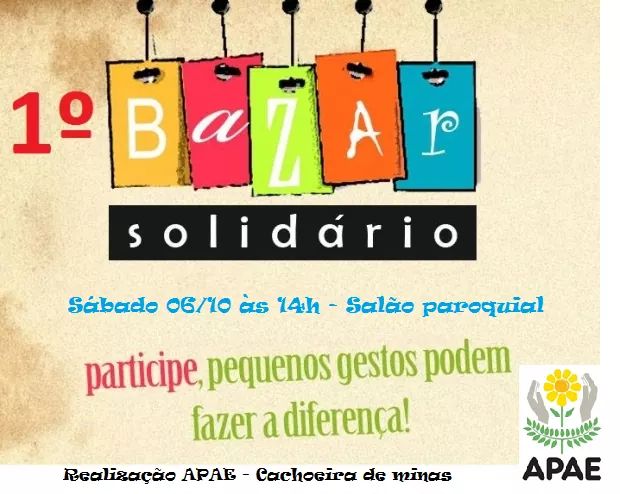 1° Bazar Solidário no salão Paroquial á partir das 14h00.