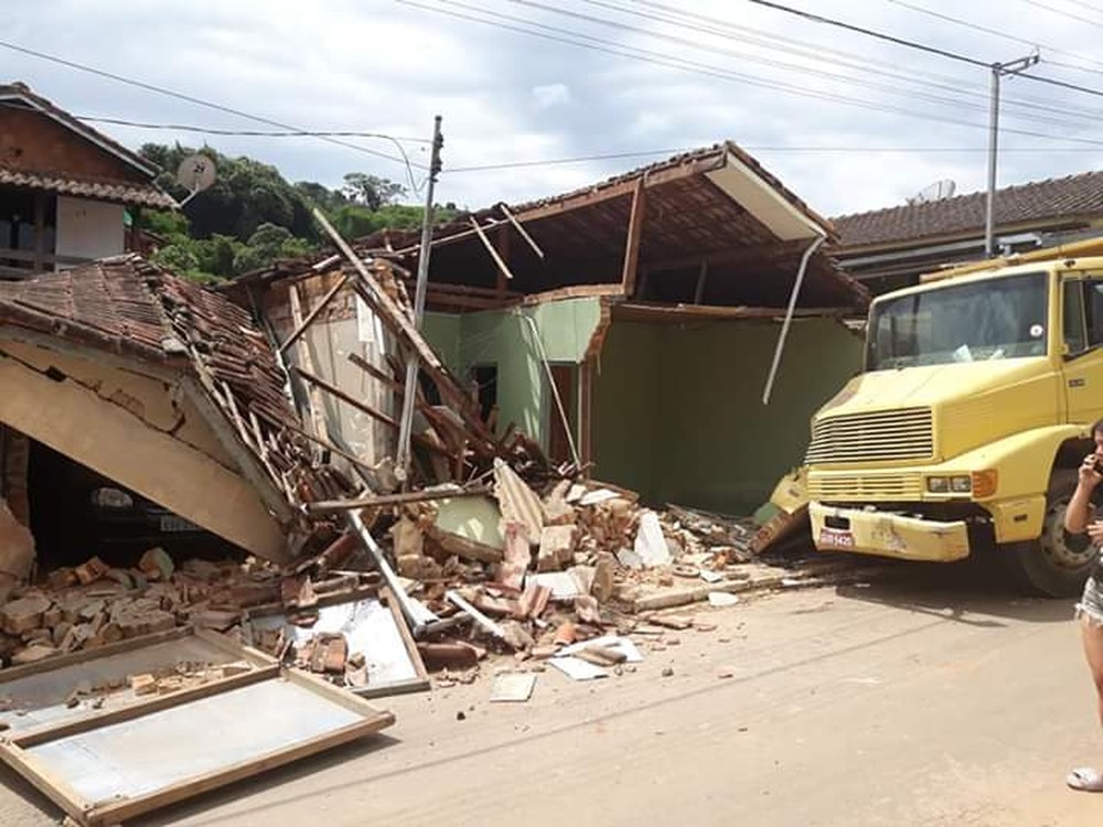 Em Ipuiuna, uma casa foi destelhada e outra ficou destruída após um caminhão atingir as duas no bairro Turvo, no início da tarde de ontem(18).