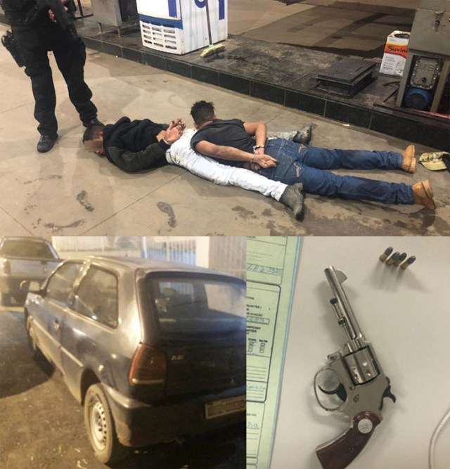 De acordo com a Polícia Civil, os investigadores receberam a informação de que os ocupantes de VW Gol realizariam um assalto e, a partir dessa informação, passou a monitorar a movimentação dos suspeitos.