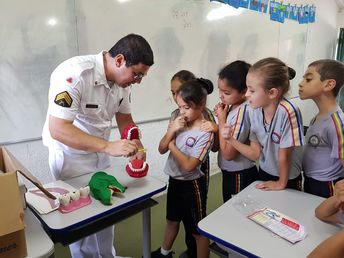 EQUIPE ODONTOLÓGICA DO NAIS DA 17ª RPM PALESTRA AOS ALUNOS DO COLÉGIO TIRADENTES EM POUSO ALEGRE