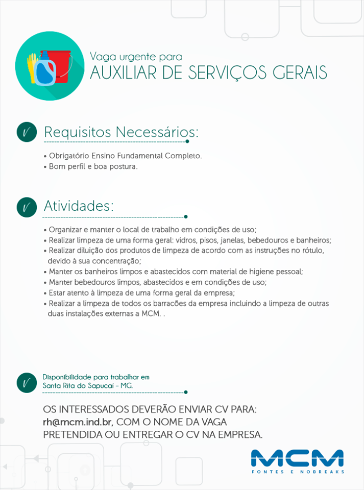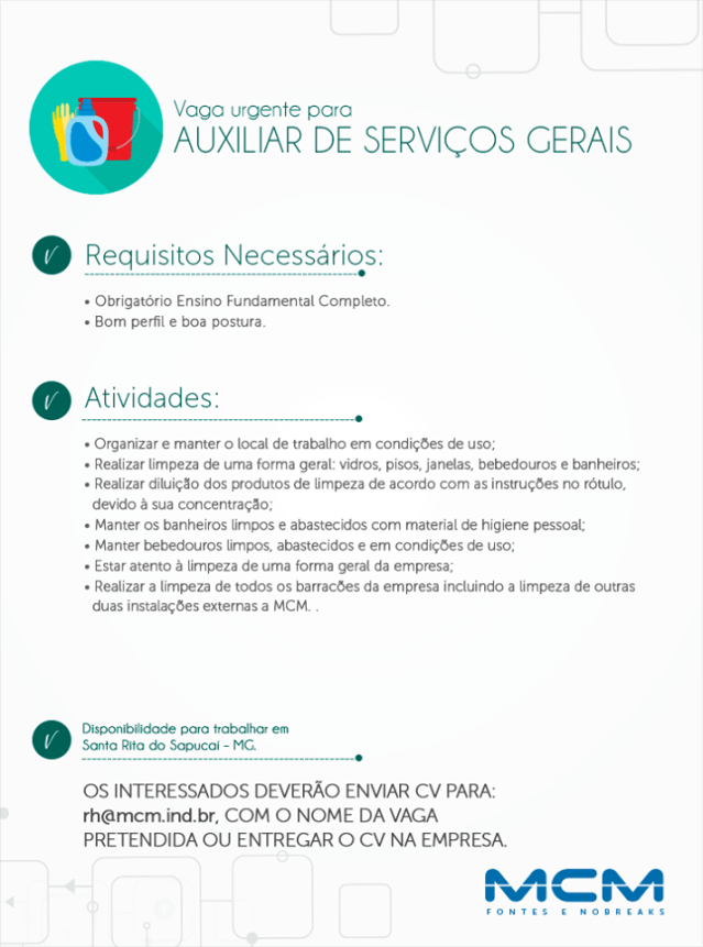 Oportunidade de Emprego – Auxiliar de Serviços Gerais