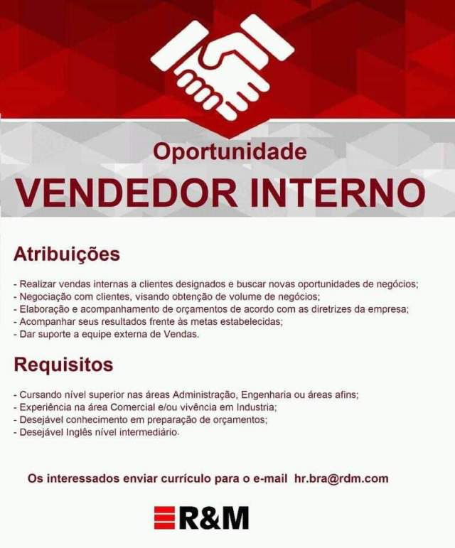 Oportunidade de Emprego – Vendedor Interno