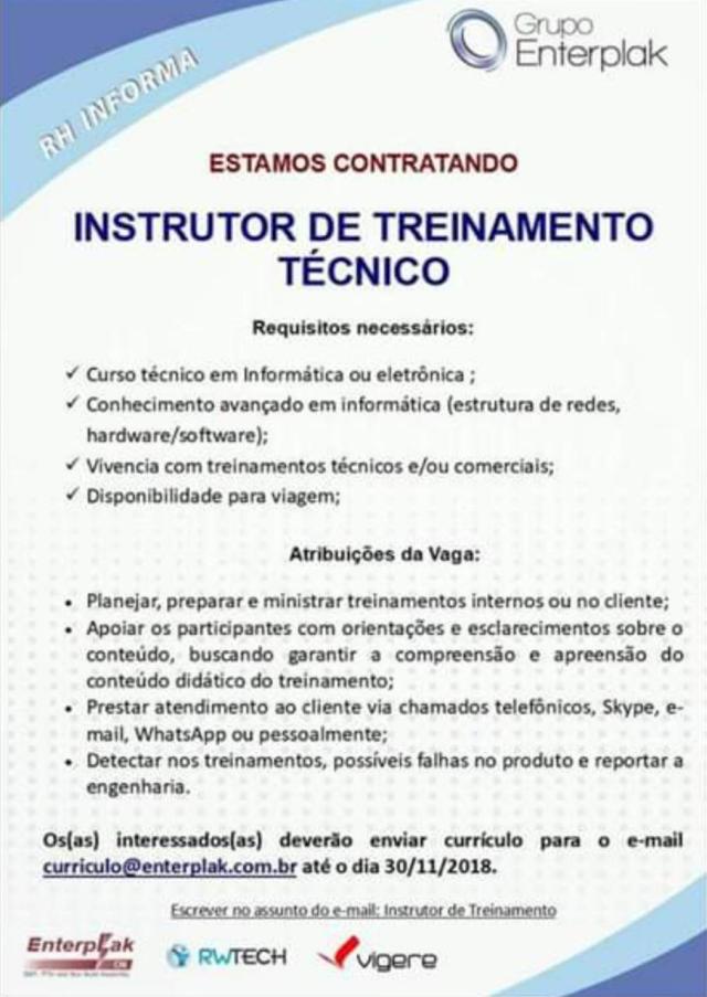Oportunidade de Emprego – Instrutor de Treinamento Técnico