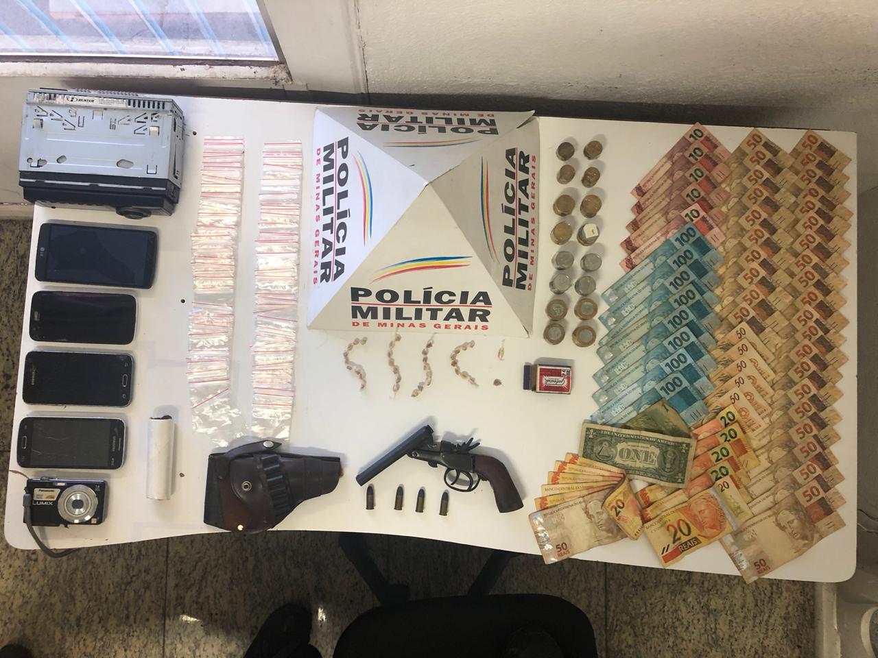 Durante diligências os militares ingressaram no imóvel surpreendendo dois homens na casa. Nas buscas foram encontrados no interior do imóvel cerca de três mil reais em dinheiro, duas pedras de crack, diversos aparelhos celulares de procedência duvidosa e vasto material para embalagem de drogas.
