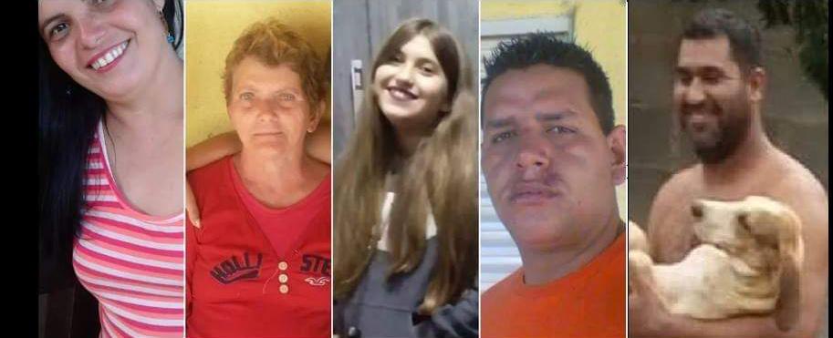As vítimas são Marli Ferreira Barbosa, 34 anos, Ênio Dias Ferreira, 35 anos – marido de Marli, Catarina Maria de Jesus, 64 anos – mãe de Marli, Marina Ferreira Barbosa, 14 anos – filha de Ênio e Marli, Fernando dos Santos Barbosa, 30 anos – sobrinho de Marli que foram sepultadas no início da noite de hoje(09) em São Sebastião da Bela Vista.