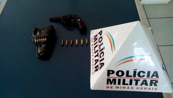 No local a PM apreendeu uma arma de fogo revolver Calibre .32 e várias munições.