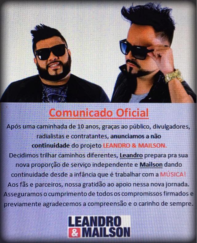 Comunicado Oficial – Leandro & Mailson