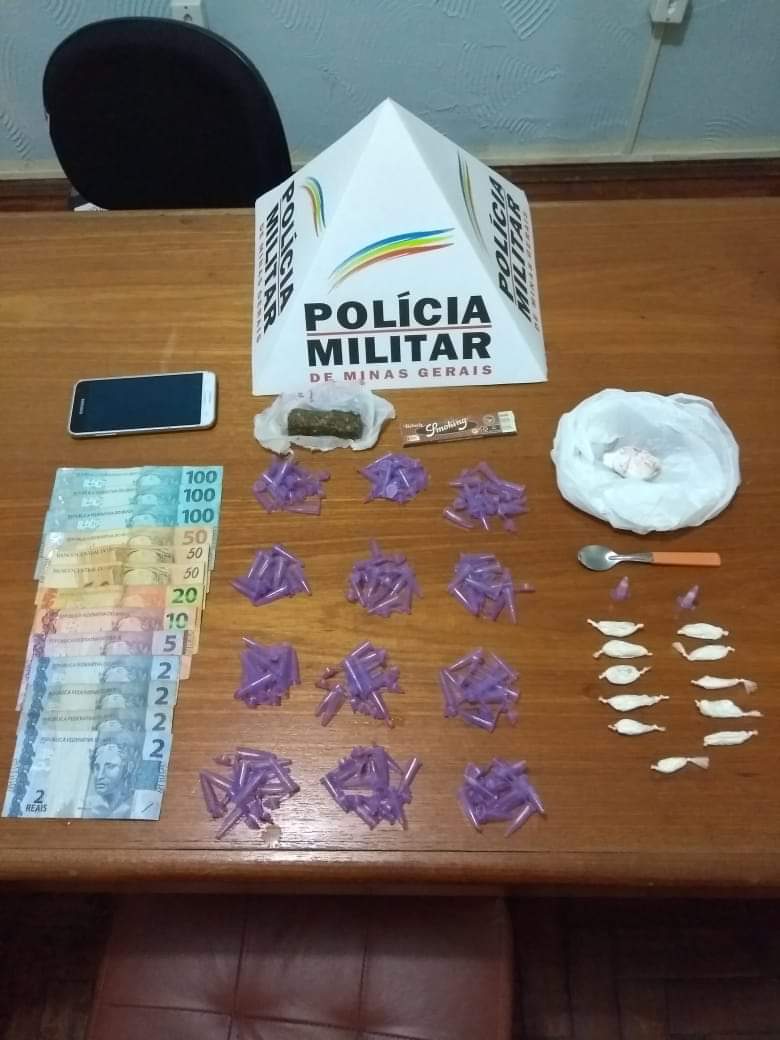 Durante a abordagem, o passageiro da motocicleta, P.S.O, de 21 anos, também tentou evadir, saindo correndo e dispensando pelo trajeto 01 tablete de maconha; pinos e papelotes de cocaína, porém foi abordado e preso em flagrante delito.