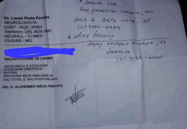 “Minha cunhada tem 53 anos, de uns três anos pra cá, ela começou a ter uns lápsos de memória, então meu irmão a levou em um médico especialista, sendo constatado Alzheimer.