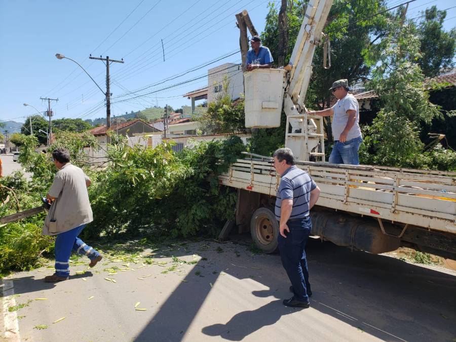Equipes trabalham na retirada das árvores caídas em Santa Rita