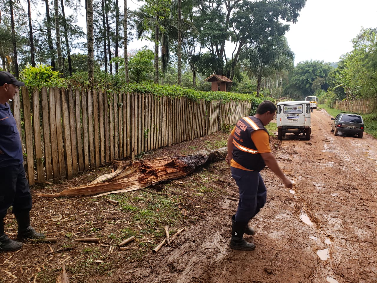 Defesa Civil retira tronco de árvore caído na estrada
