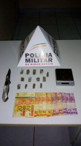 No bairro São Geraldo, em Pouso Alegre, os militares receberam denúncia de um ponto de tráfico. No local, a guarnição encontrou o autor de 16 anos saindo de um lote vago, sendo detido. Ele portava dinheiro. No lote, foram encontradas drogas ocultadas sob entulho, além de uma balança de precisão.