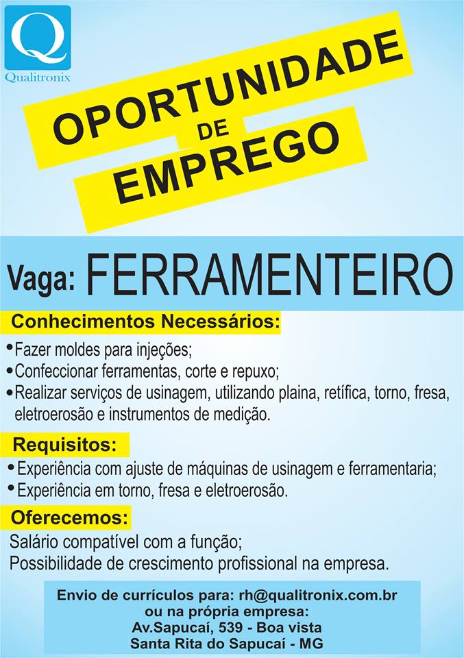 Oportunidade de Emprego – Ferramenteiro