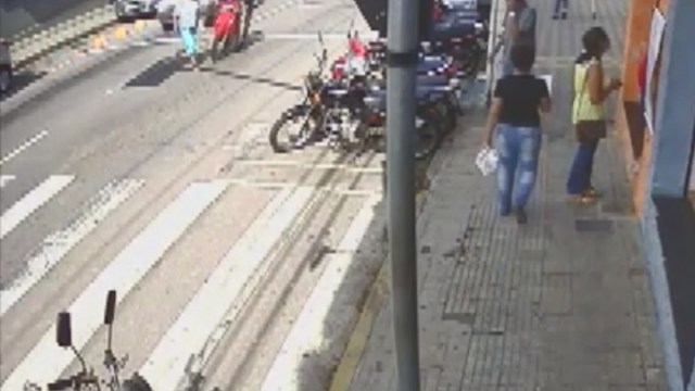 Um vídeo registrado por uma câmera de segurança na região mostrou quando a idosa tentava atravessar a rua, pouco antes de uma faixa de pedestres, e acaba atingida pela moto. Conforme a PM, o sinal estava aberto no momento do acidente.