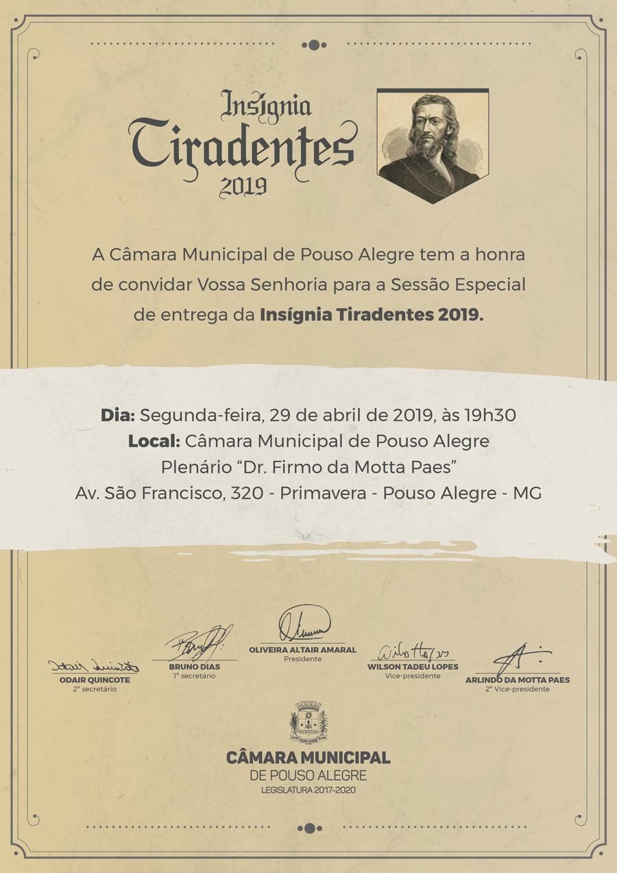 INSÍGNIA TRADENTES 2019 – Câmara Municipal de Pouso Alegre