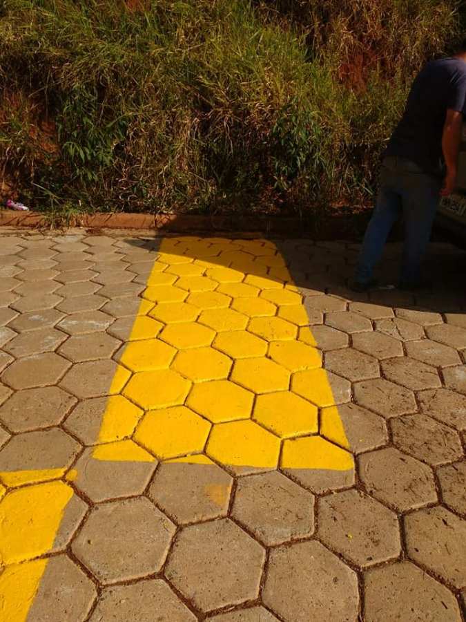 Prefeitura sinaliza os redutores de velocidade na estrada do Portal da Serra