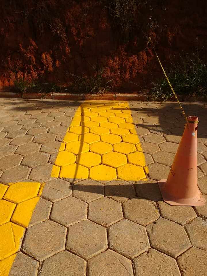 Prefeitura sinaliza os redutores de velocidade na estrada do Portal da Serra
