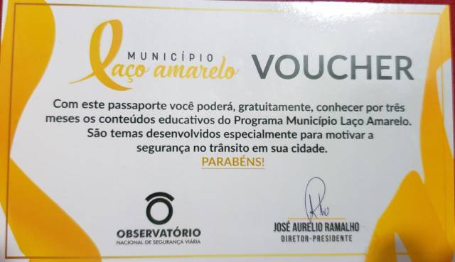 de 100 municípios para ser contemplado com o “Programa Município Laço Amarelo”, com isso, o município receberá gratuitamente, por três meses, conteúdos educativos que serão usados em campanhas educativas do trânsito.
