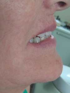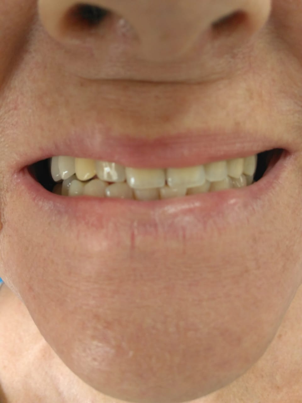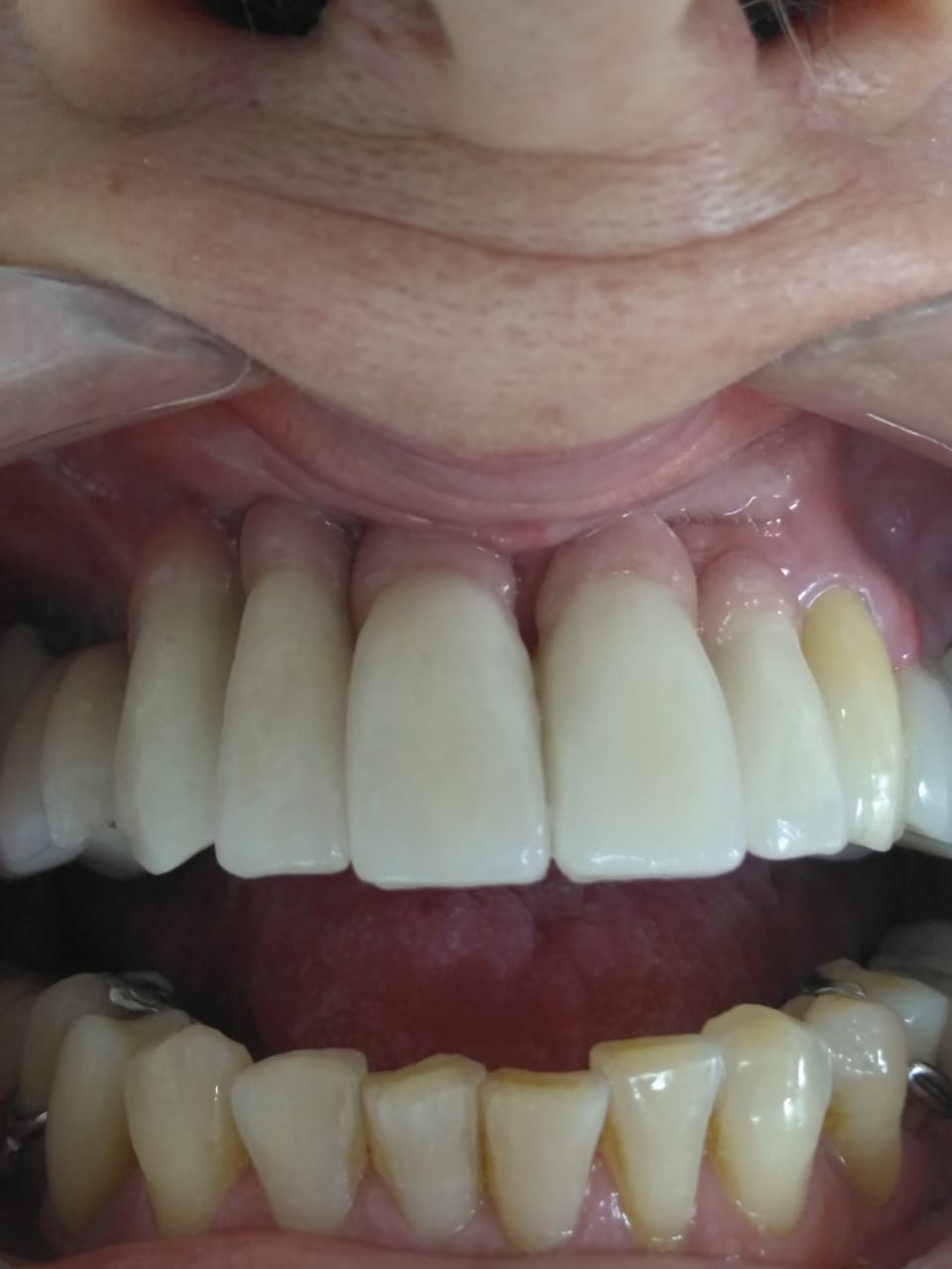 Nessa foto, quase todos os dentes já estavam prontos. O canino esquerdo ainda era provisório ( está mais amarelo).
