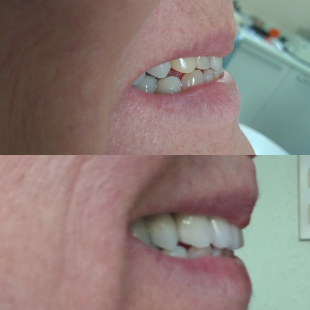 Em uma das provas já notamos uma boa melhora na oclusão e no perfil