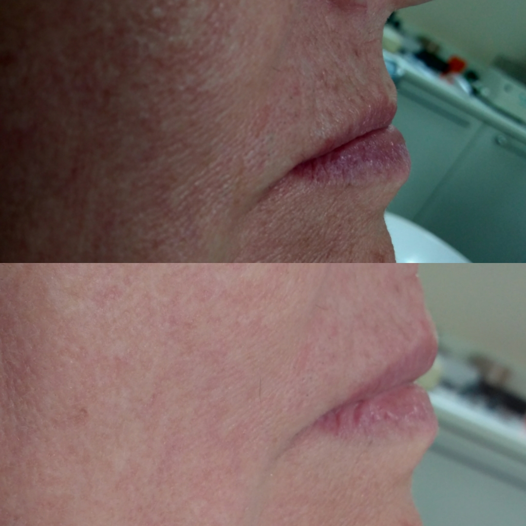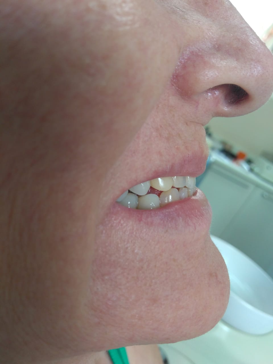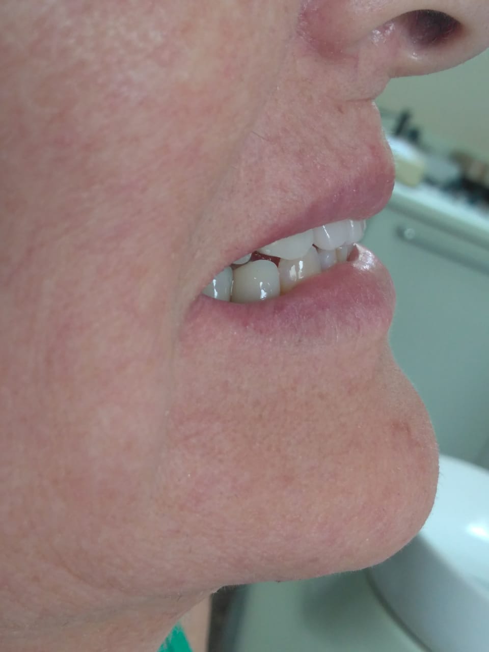 O lábio superior estava “para dentro” e esse aspecto é realmente extremamente desagradável. Tem-se a impressão que a pessoa não tem dentes, além de envelhecê-la.