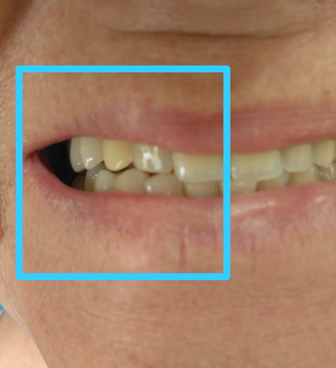 Pois bem: fizemos uma foto inicial, como ela se apresentava no dia em que nos procurou, com um sorriso normal.