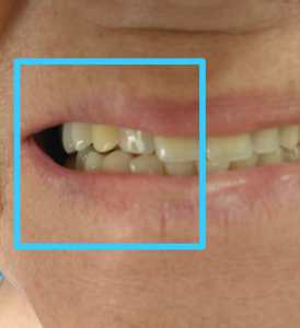 A paciente não concordou. Então a solução era corrigir a estética jogando as coroas para frente ao máximo possível.