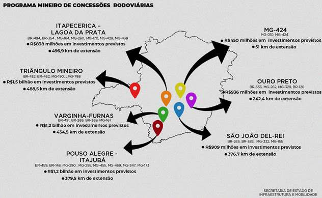 Contemplam o programa, a partir do próximo ano, os lotes de Pouso Alegre-Itajubá (423,6 quilômetros de extensão), Varginha-Furnas (434,5 quilômetros), São João del-Rei (376,7 quilômetros), Itapecerica-Lagoa da Prata (496,9 quilômetros) e Ouro Preto (242,4 quilômetros).