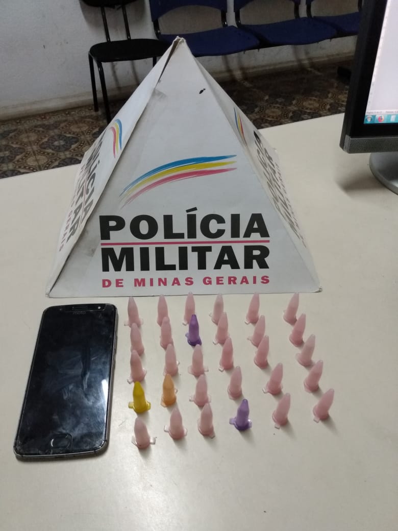 Em Ouro Fino, a Polícia Militar, durante operação Batida Policial no Estádio Municipal Capitão Armando, deu ordem de parada ao autor, o qual tentou evadir em sua bicicleta, dispensando um embrulho plástico dentro do campo de futebol, o qual continha 30 (trinta) pinos plásticos contendo substância análoga a cocaína.