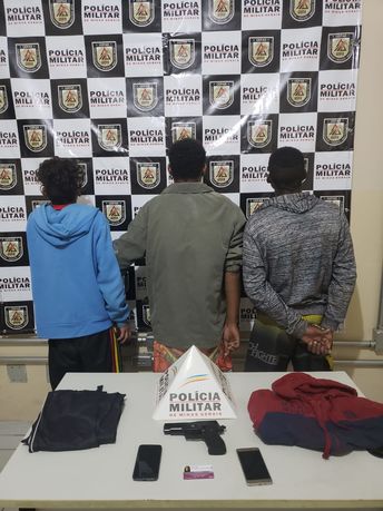 Findadas as diligências, dois autores (18 e 24 anos) foram presos pelo crime de roubo, um autor (21 anos) preso pelo crime de receptação, um simulácro de arma de fogo e uma motocicleta apreendida e os dois aparelhos celulares foram recuperados.
