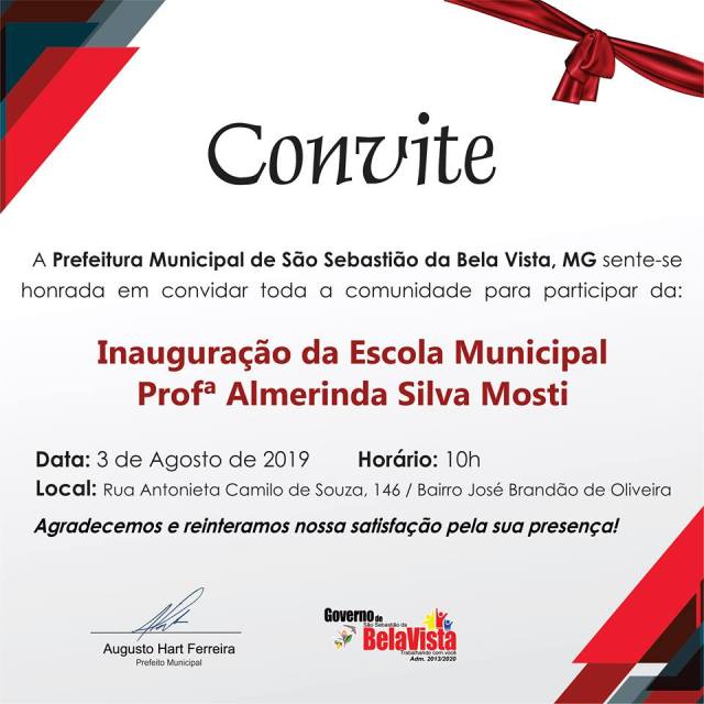 Convite – Inauguração da Escola Municipal Profª Almerinda Silva Mosti