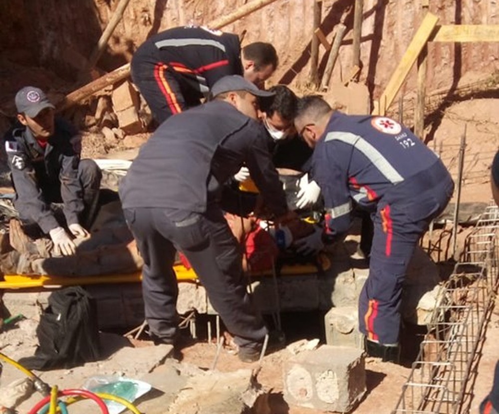 Em Lavras, um operário que trabalhava em uma obra ficou ferido depois do muro de arrimo de uma obra desabar na manhã de ontem(04) na Vila São Francisco.