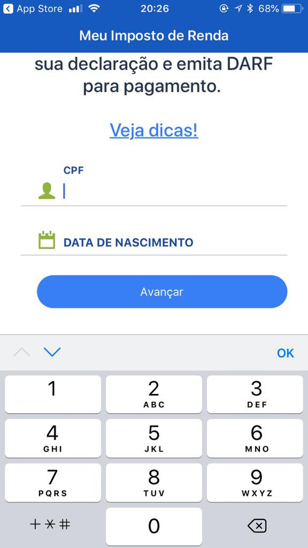 Pelo aplicativo da Receita