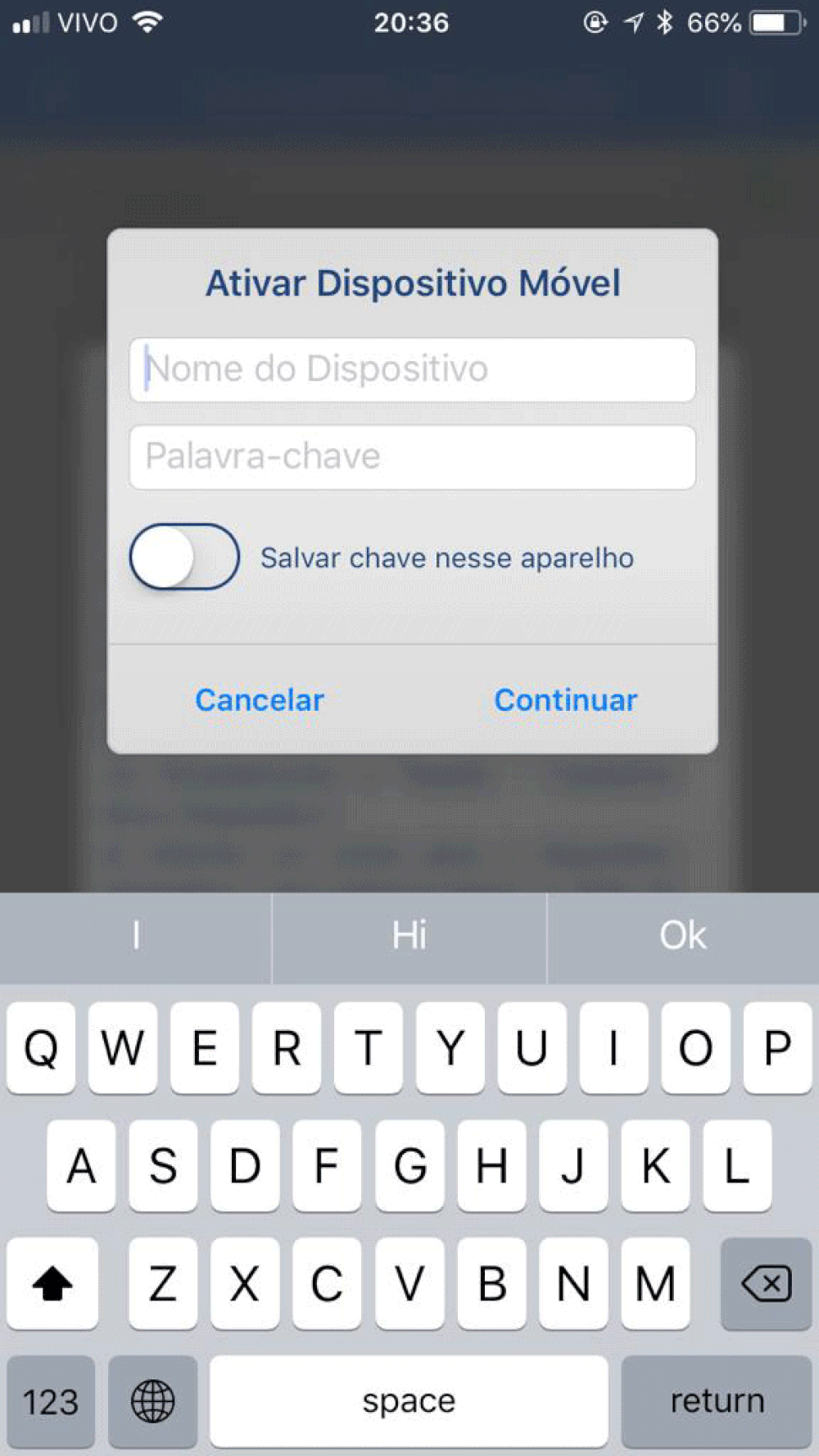 - Digite o nome e a palavra-chave de ativação do aparelho