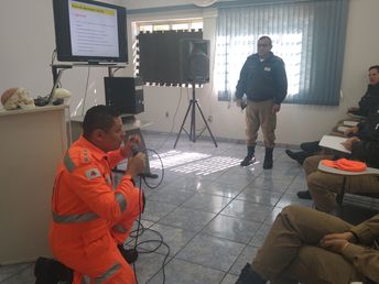 Durante palestra o Cap. realizou dinâmicas para simular ocorrências
