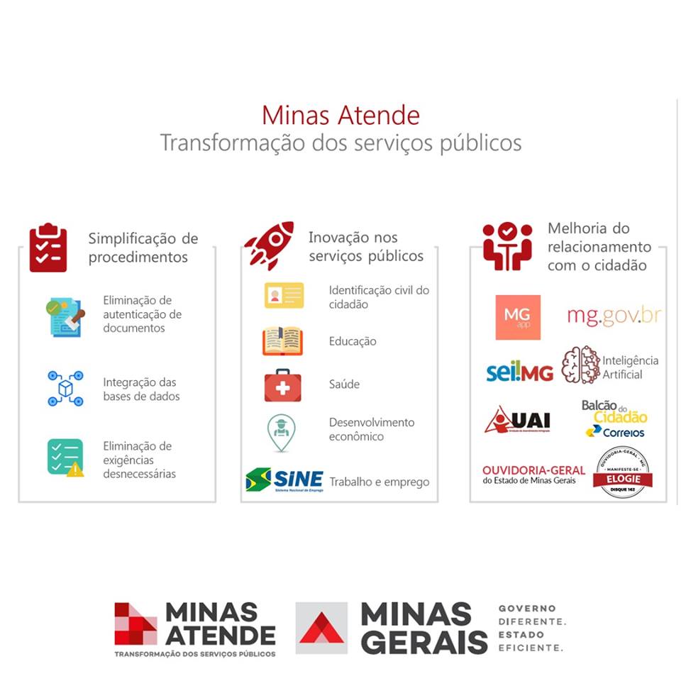 Atualmente, o Governo de Minas Gerais possui cadastrados em sua carta de serviços mais de 600 itens públicos para os cidadãos, empresas e municípios. No ano de 2018, registrou mais de 20 milhões de atendimentos em seus principais canais. Podem ser destacados os seguintes números: 12 milhões de acessos ao portal mg.gov.br; 6,5 milhões de atendimentos nas Unidades de Atendimento Integrado (UAIs); 2,7 milhões de ligações recebidas no LigMinas (155); 500 mil acessos nos Terminais de Autoatendimento; e 500 mil usuários do aplicativo MGApp.