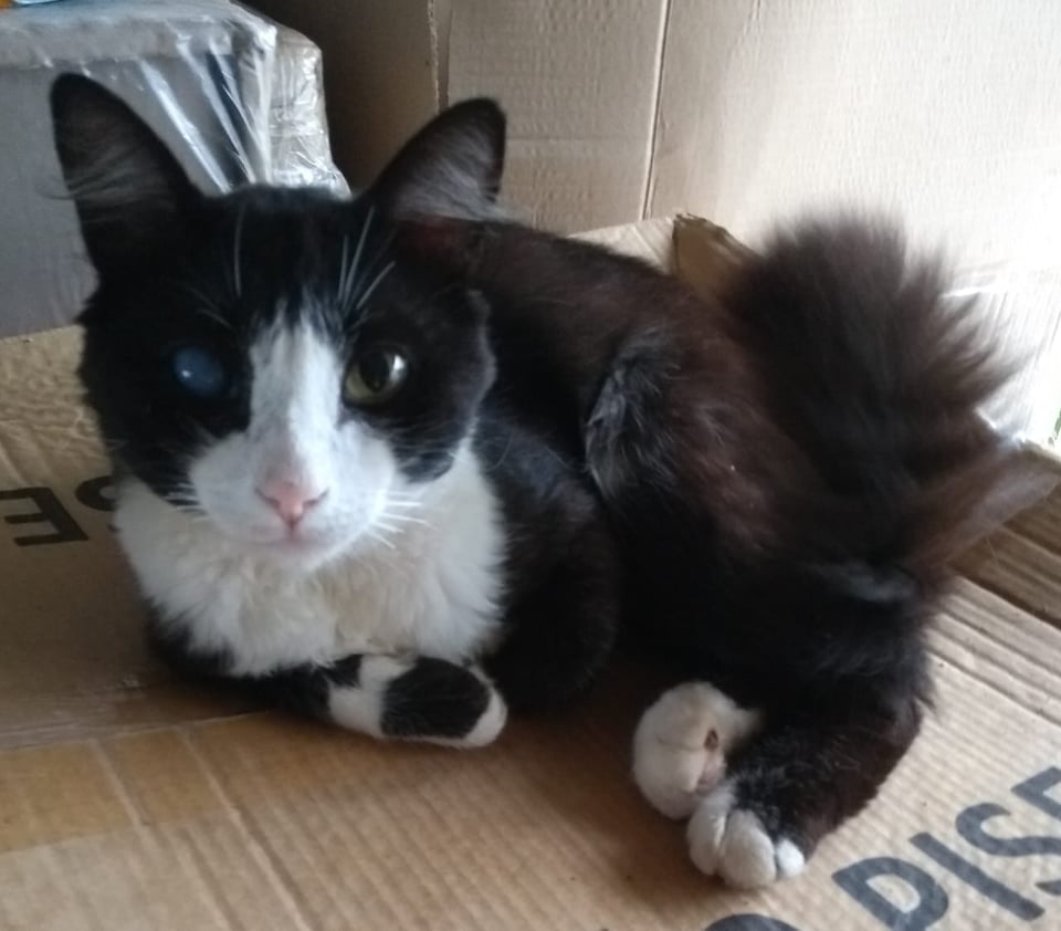 Ele desapareceu da Rua dos Jasmins, no Recanto das Margaridas. Ele tem um olho branco.