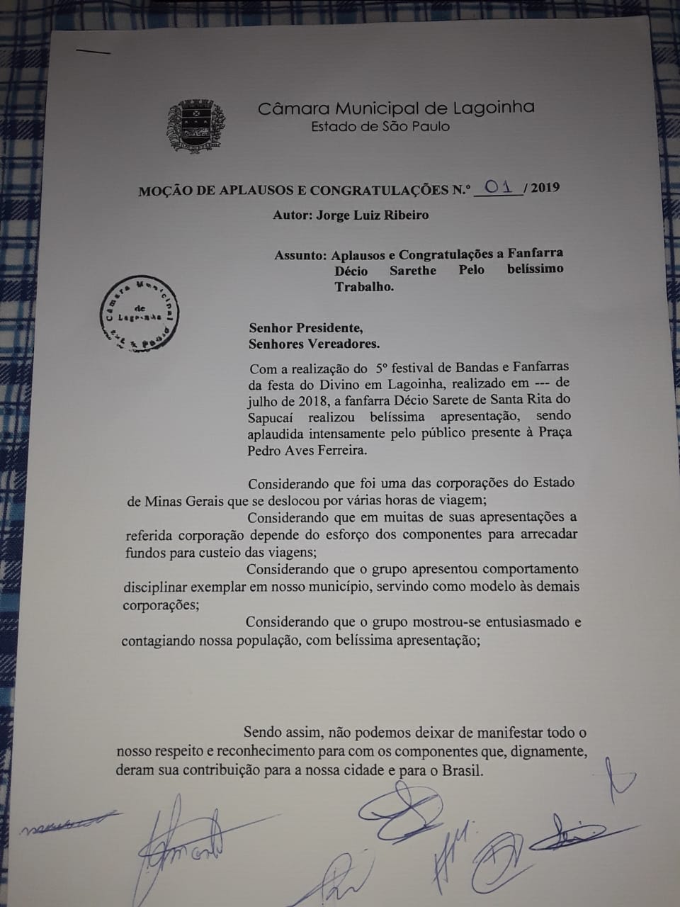 Fanfarra Décio Saretti recebe homenagem em Lagoinha