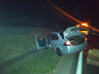 Durante a fuga, o autor que conduzia o veículo perdeu o controle e saiu da pista, vindo a cair numa canaleta de captação de água as margens da rodovia.
