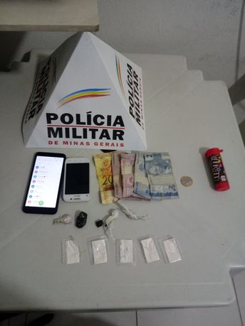 A guarnição deslocou-se ao local e logrou êxito na localização dos dois autores que tinham entre 18 e 21 anos. Durante abordagem e busca pessoal, foram localizados com a autora 5 papelotes de cocaína, 4 buchas de maconha e R$6,00 em moeda corrente.