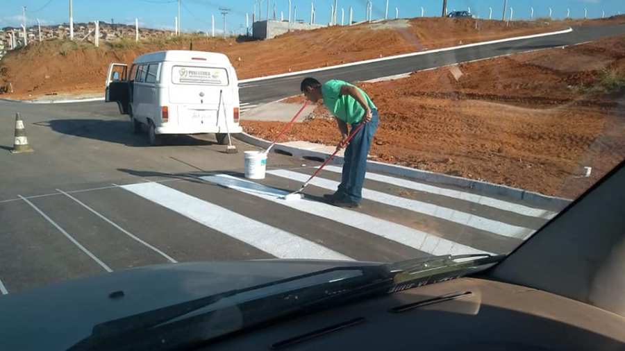Loteamento Itália – Sinalização das faixas elevadas de pedestres no trecho asfaltado