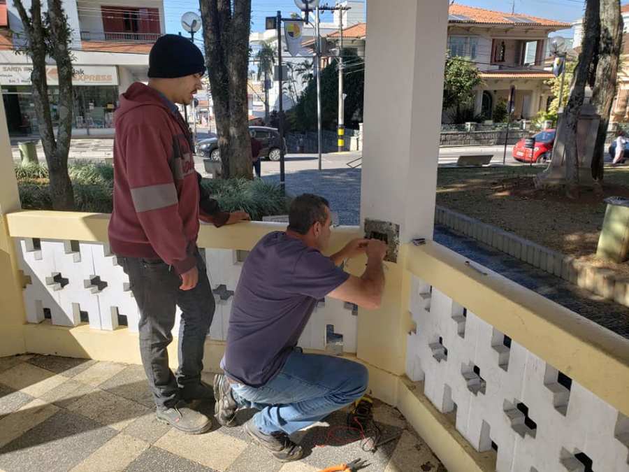 Manutenção na iluminação do Coreto na Praça Santa Rita