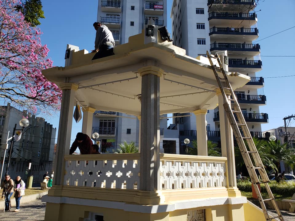 Manutenção na iluminação do Coreto na Praça Santa Rita