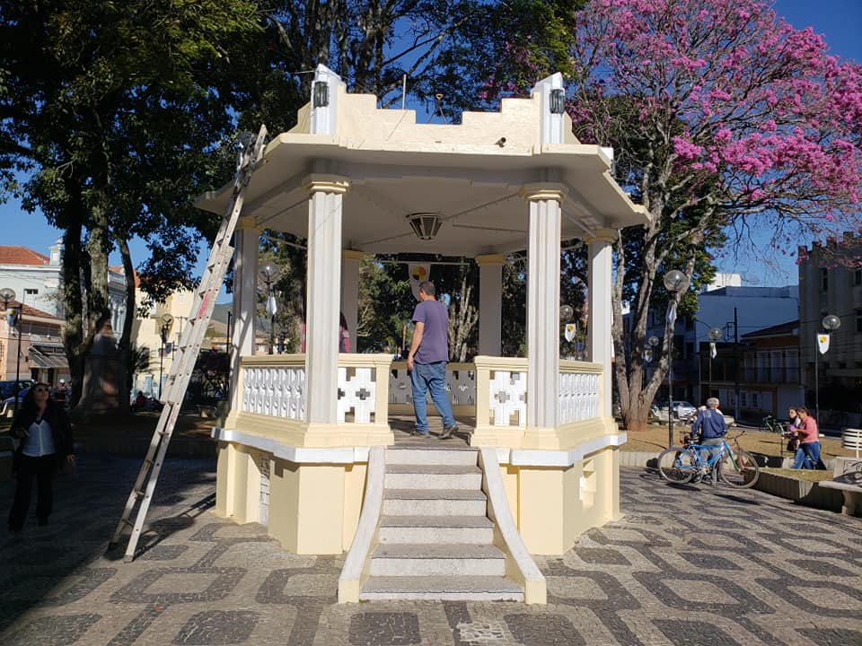 Manutenção na iluminação do Coreto na Praça Santa Rita
