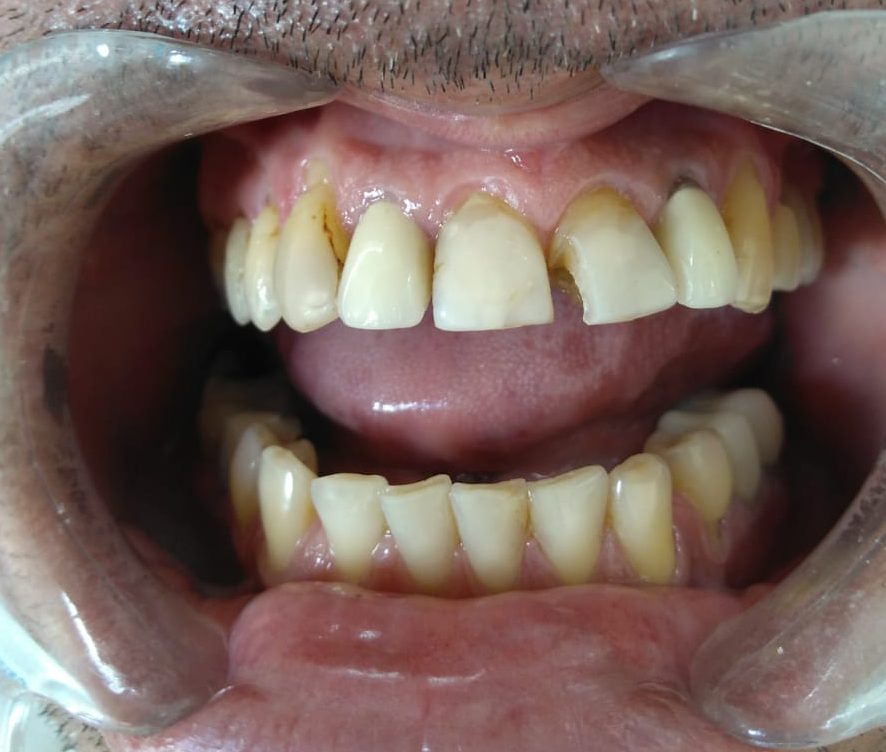 Dr. Erasmo Camanducaia- Reabilitação Estética – 7 lentes de contato diretas em resina e duas coroas em cerâmica.