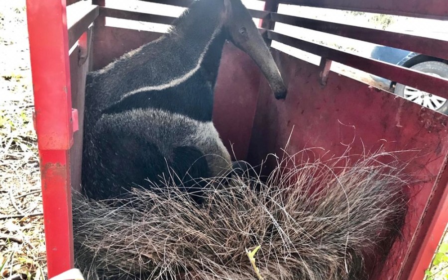 Tamanduá-bandeira é capturado dentro de casa em Pouso Alegre