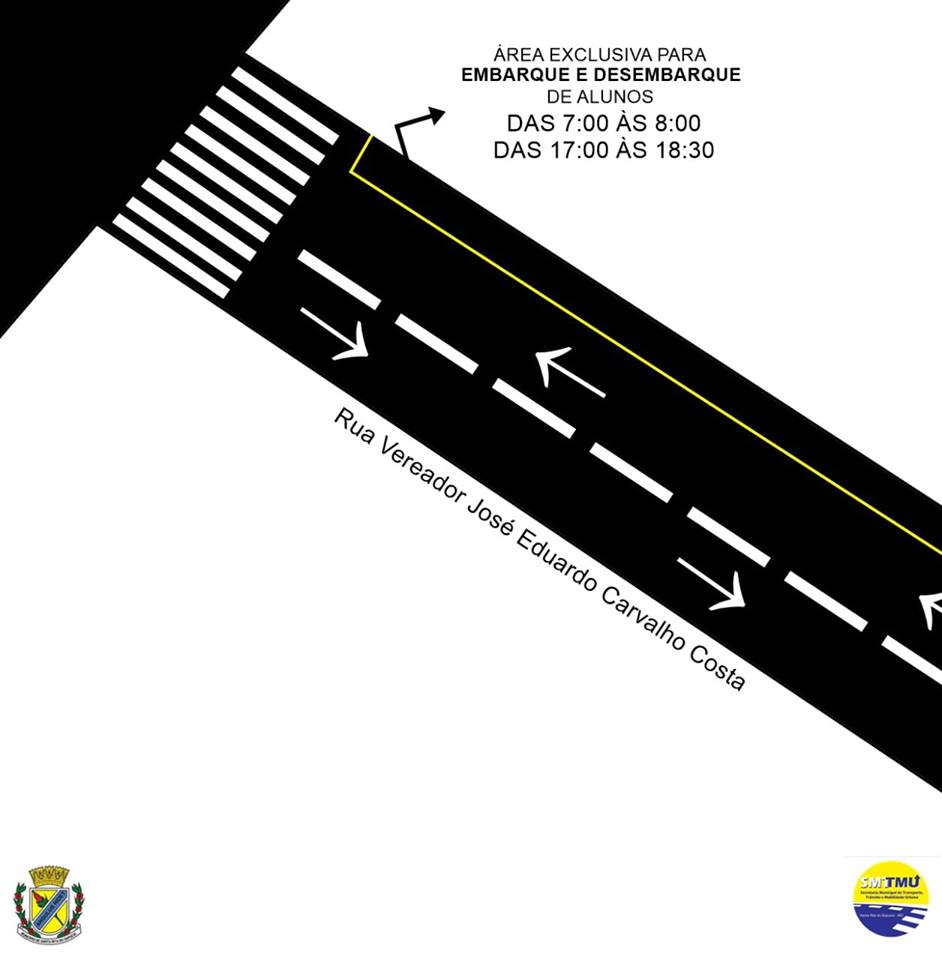 Dando continuidade nas alterações próximo à Praça Urbana Carolina de Azevedo, na Rua Vereador José Eduardo Carvalho Costa esquina com a Praça Urbana Carolina de Azevedo, terá uma área exclusiva para embarque e desembarque de alunos das 7h00 às 8h00 e das 17h00 às 18h30 de segunda à sexta-feira.