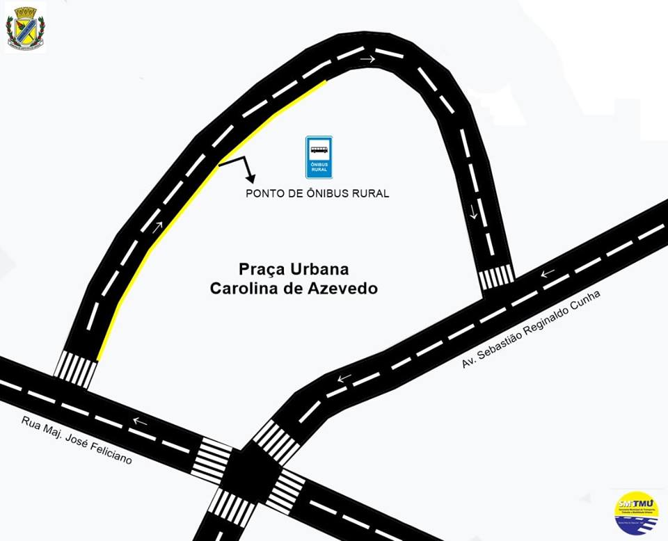 Os ônibus rurais passarão a parar na lateral da praça, conforme a imagem abaixo: