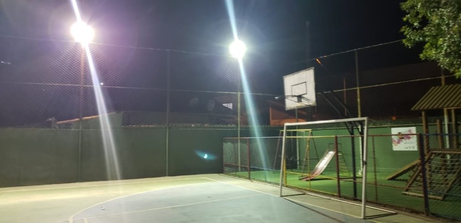 Nova iluminação é instalada na quadra da Escola Municipal Joaquim Inácio